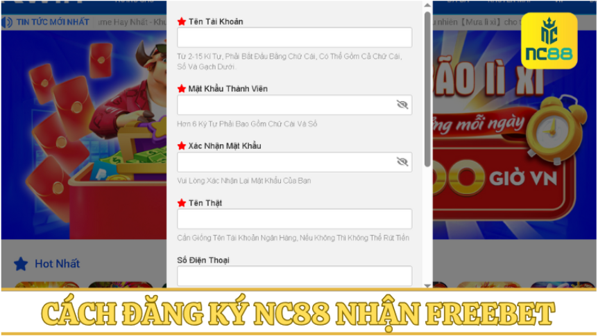 Cách đăng ký NC88 nhận freebet