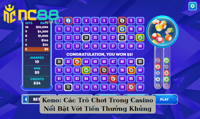 Keno: Các Trò Chơi Trong Casino Nổi Bật Với Tiền Thưởng Khủng