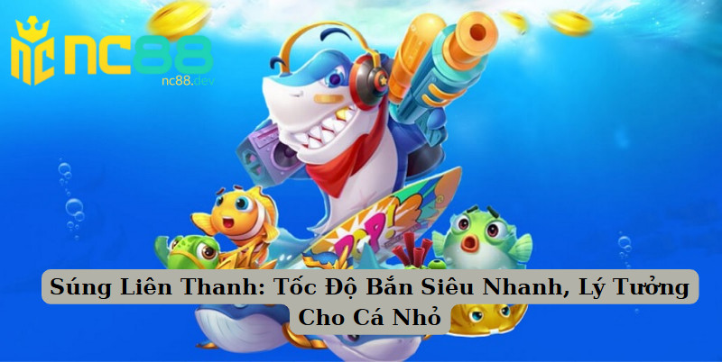 Súng liên thanh cho phép bạn xả đạn liên tục với tốc độ cao, rất phù hợp khi màn chơi xuất hiện nhiều đàn cá nhỏ bơi theo nhóm. Nhờ tốc độ bắn nhanh, bạn có thể thu thập xu nhanh chóng mà không cần dùng tới đạn có sức công phá lớn. Tuy nhiên, vì tốc độ tiêu hao đạn cũng nhanh không kém thì số xu của bạn sẽ hết rất nhanh nếu không biết cách kiểm soát lực bắn của mình. Theo chia sẻ của các tay sát cá lâu năm thì đây là loại vũ khí thích hợp khi bạn muốn gom cá nhỏ hàng loạt trong thời gian ngắn.